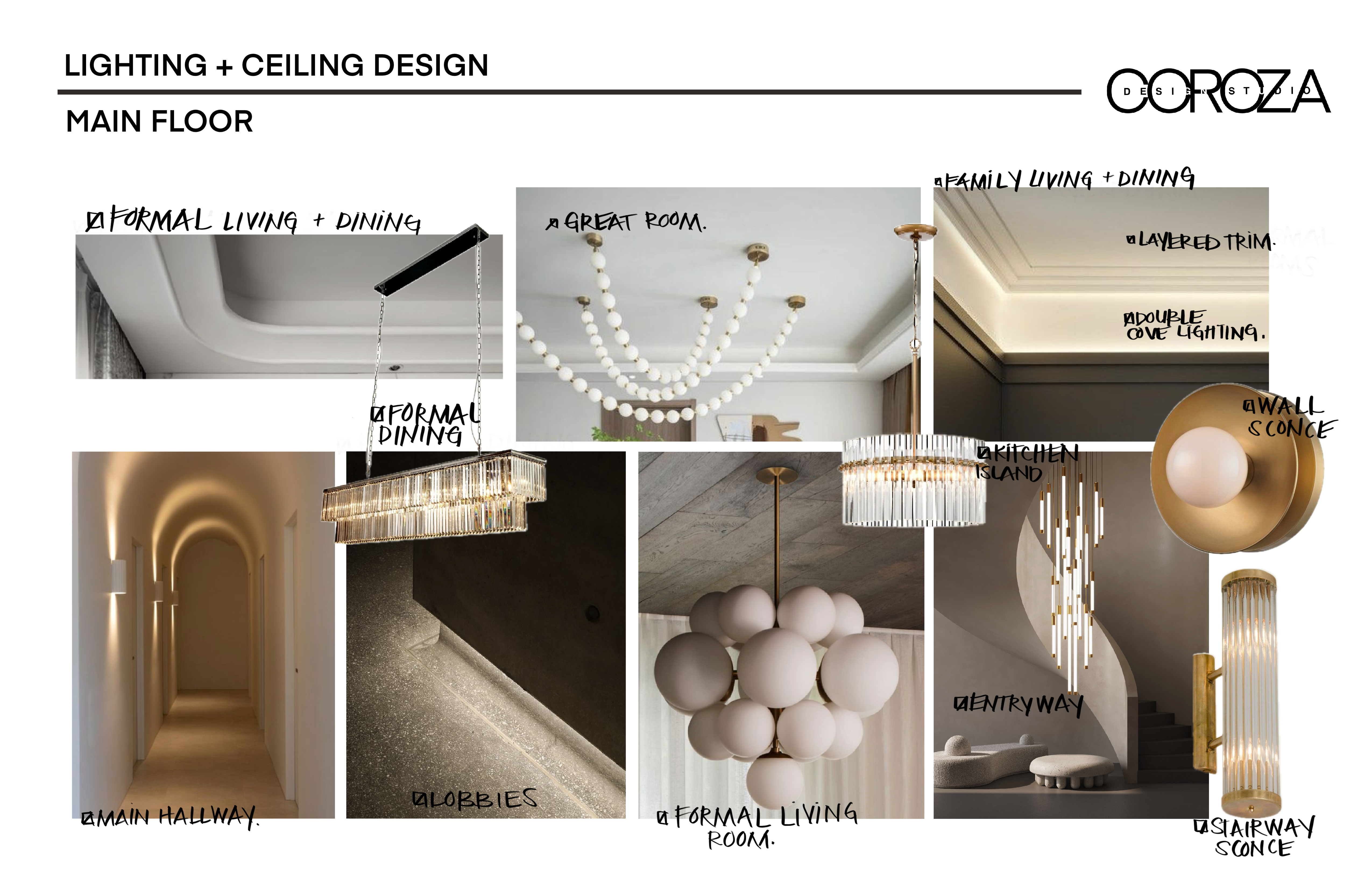 Floor Plans, Furniture Plans, Reflected Ceiling Plan (Lighting),